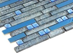 Metallic Weather Orbit OS-1007 Grey Random Bricks Glass And Metal Glossy And Brushed Tile