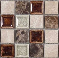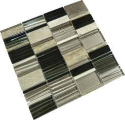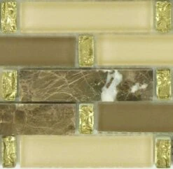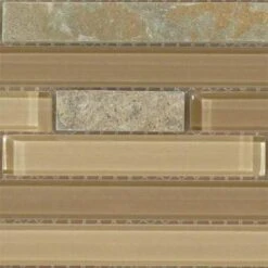 Contemporary Mocha GS20 Beige Random Bricks Glass And Slate Glossy And Unpolished Tile
