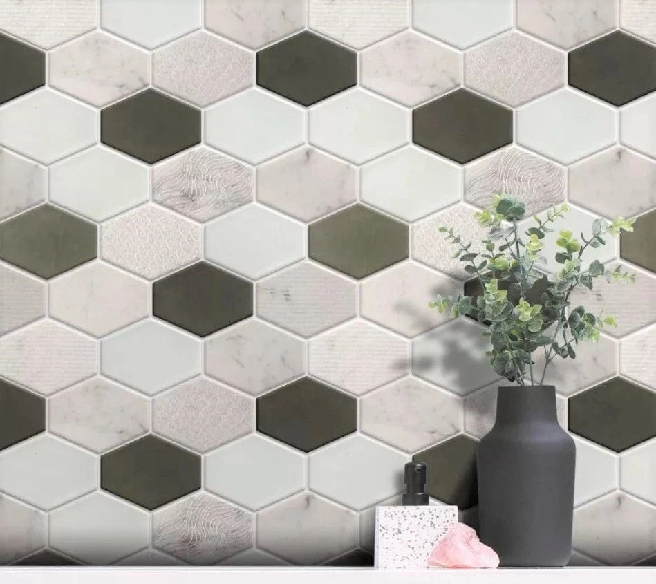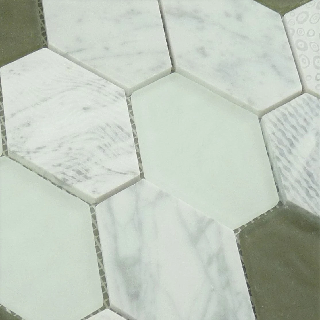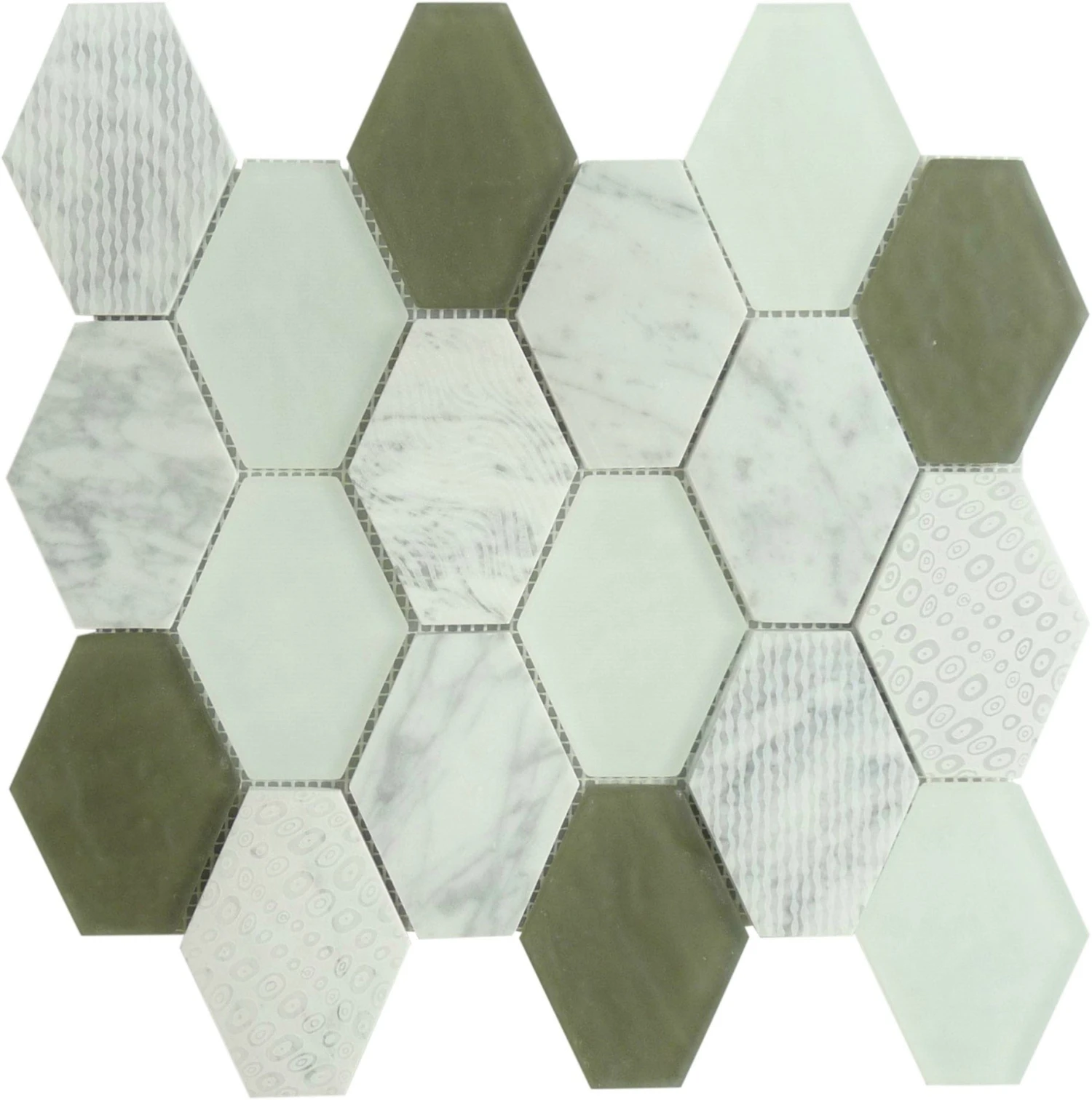 For the last few years tiles of hexagon form have become one of the primary tendencies in tile design. Unique layout much like a honeycomb causes glass and stone white hexagon tile appear refreshing and originally, but this is not its single benefit. The hexagon shape allows playing with a blend of tones and using numerous hues in design, whilst frosted & polished hexagon mosaic is suitable solution for both large and compact properties, as its fractional design doesn’t overload the area. A material, scheme, shape, color and size of the hexagons in the design and style of this frosted & polished tile are thoroughly selected for forming an unique look you may artistically blend into a number of settings.