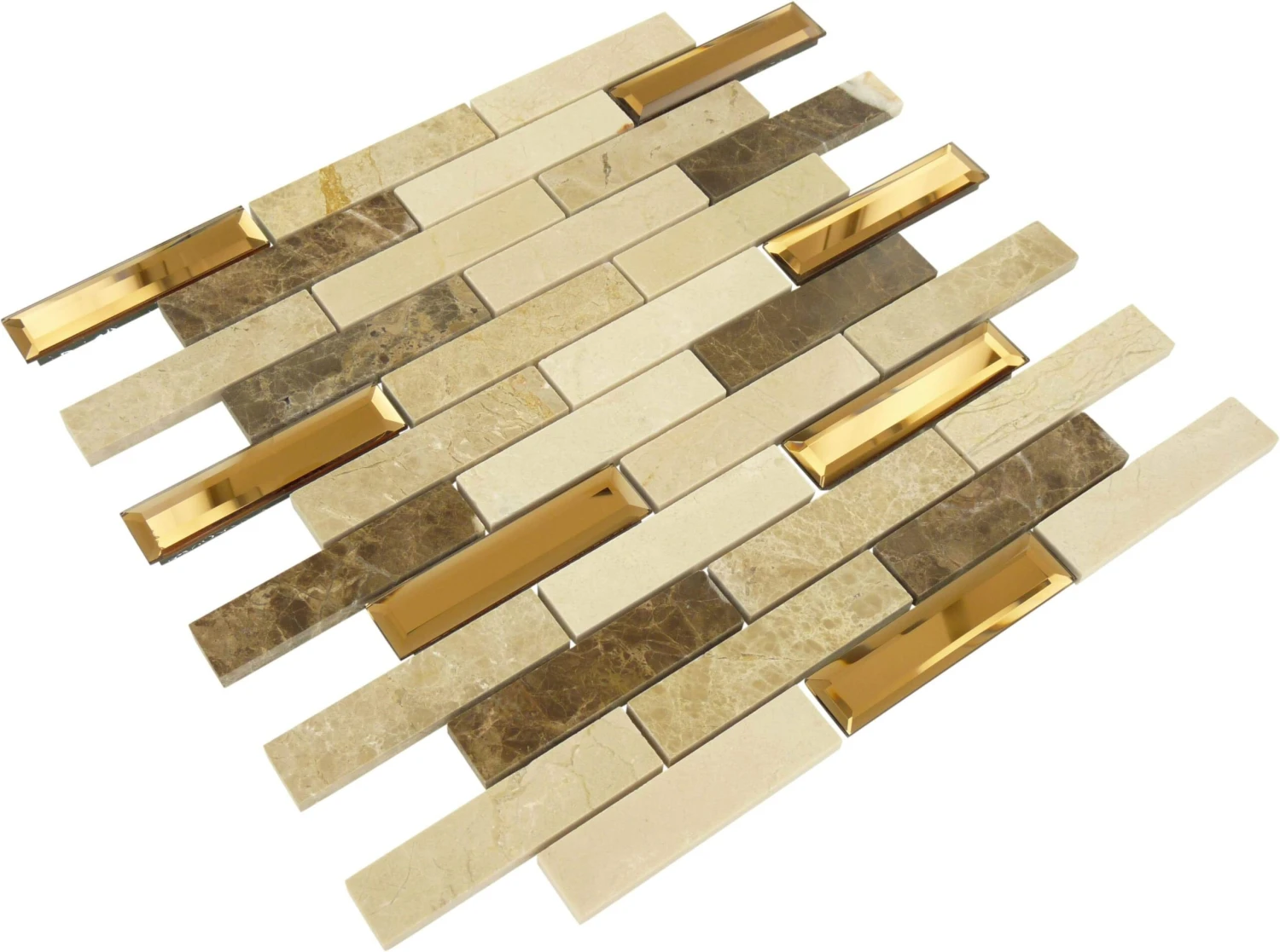 Cascade Lagos Azul, Cream Marfil And Thassos White CS-92 Brown Random Bricks Stone Polished Tile