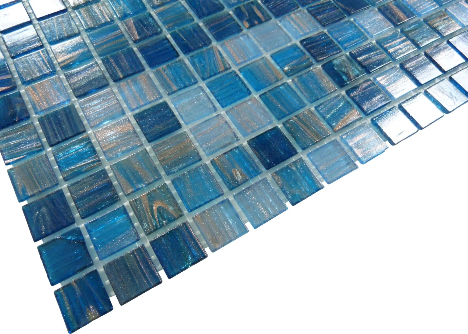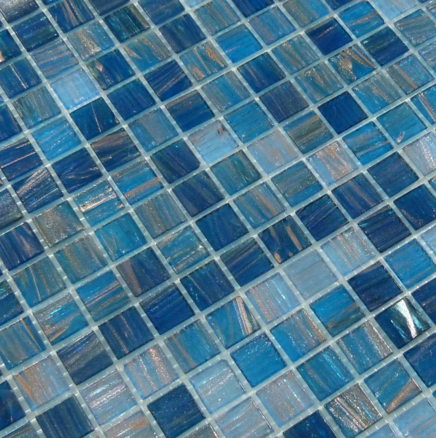 Blue and copper tones converge in this tile design to create a visual display unlike any other. Suitable as bathroom or kitchen backsplash, its glossy glass finish makes a statement. Iridescent tones are also present – ideal if you want a pool or patio that truly shines out in the sun. Best of all, glass tiles are resistant to water and fading, meaning this tile will retain its beautiful shine over time. There’s so much to love about glossy glass tile as it is – combine it with a beautiful blue hue and you’ve got a truly show-stopping design. With the Blue Copper Blend 3/4X3/4 Glossy Glass Tile, you’ve got a one-of-a-kind mosaic look for any home.