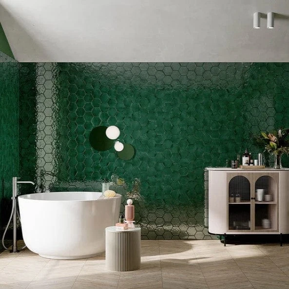 Transform your space into a luxurious retreat with the Marthas Manor Myrtle Grove Hex 4″x5″ Glossy Ceramic Tile. The intricate hexagonal shape and glossy finish add a touch of sophistication to any room. Elevate your decor with this premium ceramic tile.