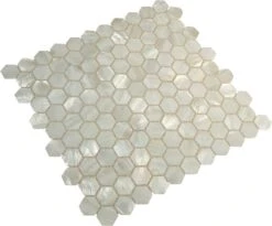 Indulge in the luxury of our Mother Of Pearl Hexagon Glossy Shell Tile. With its unique hexagonal shape and glossy finish, it adds elegance and sophistication to any space. Made from real mother of pearl, it brings a touch of nature indoors. Elevate your home with this exclusive tile.