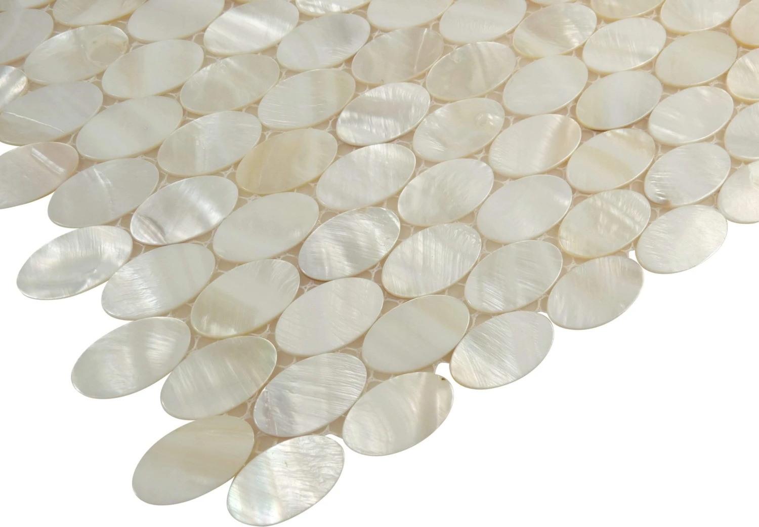Unleash your adventurous side with our Mother Of Pearl Oval Glossy Shell Tile! This unique tile, with its glossy finish and natural beauty, adds a touch of excitement to any space. Elevate your design with the iridescent shine and luxurious texture of this stunning tile.