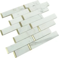 Transform your home with the Natural Bianco White and Gold Metal Random Brick Stone Tile. This tile features a unique random brick pattern that adds depth and character to any room. The combination of Bianco white stone and gold metal creates a stunning and elegant look, perfect for accent walls or kitchen backsplashes. This durable and low-maintenance tile is sure to impress for years to come. Upgrade your home decor with the Natural Bianco White and Gold Metal Random Brick Stone Tile today. Enjoy the beauty of natural stone with a modern twist.
