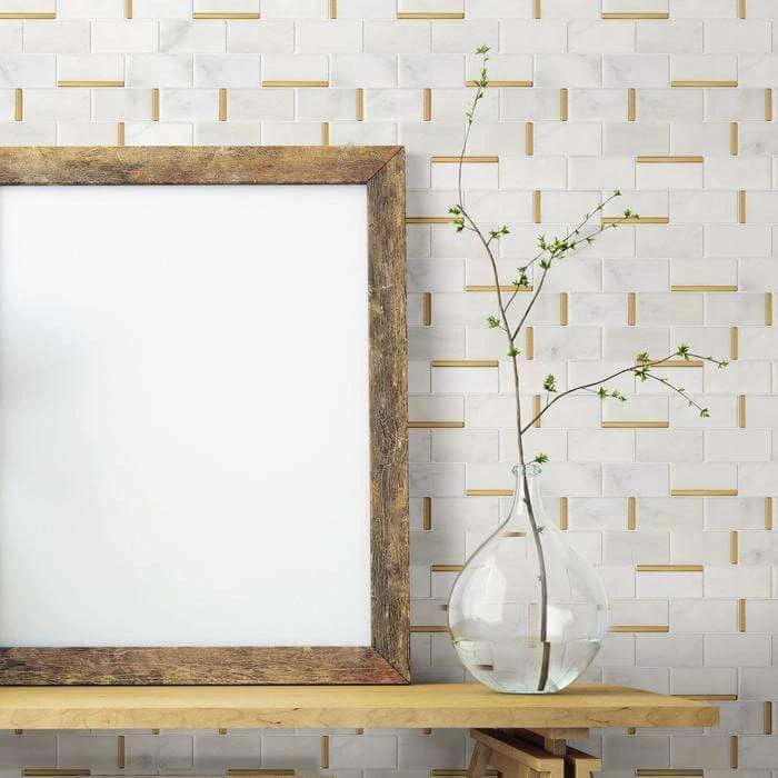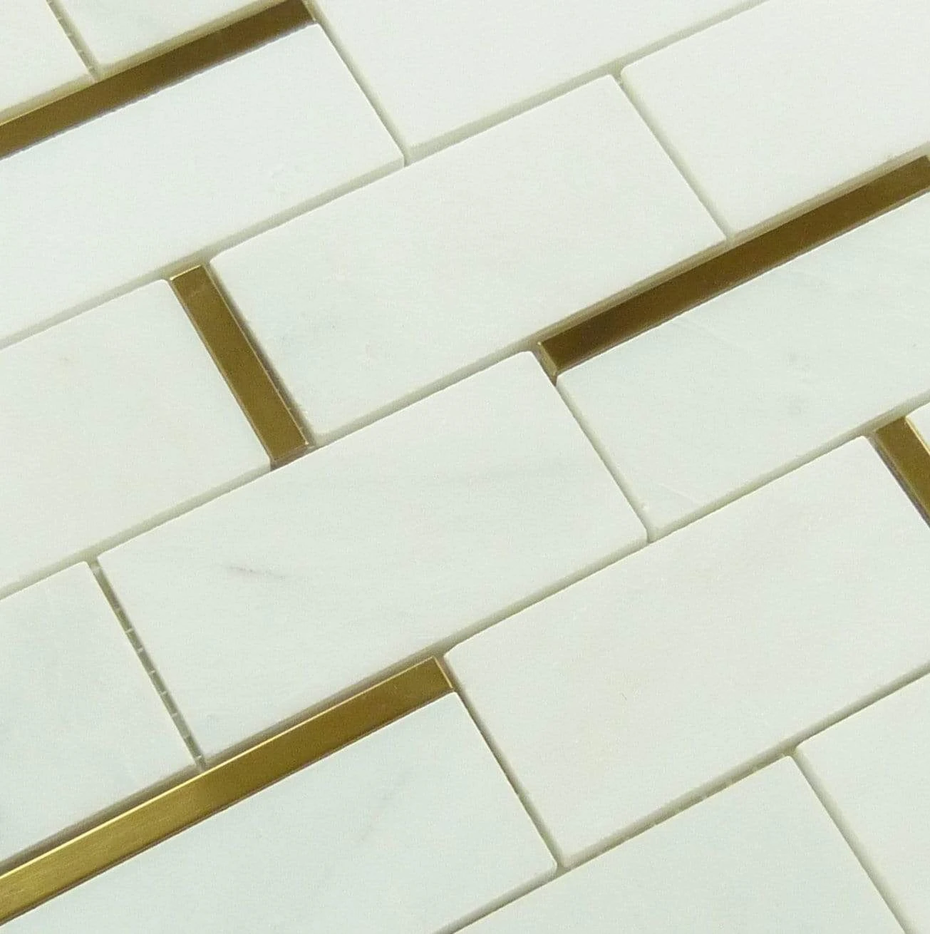 Metallic Weather Orbit OS-1007 Grey Random Bricks Glass And Metal Glossy And Brushed Tile