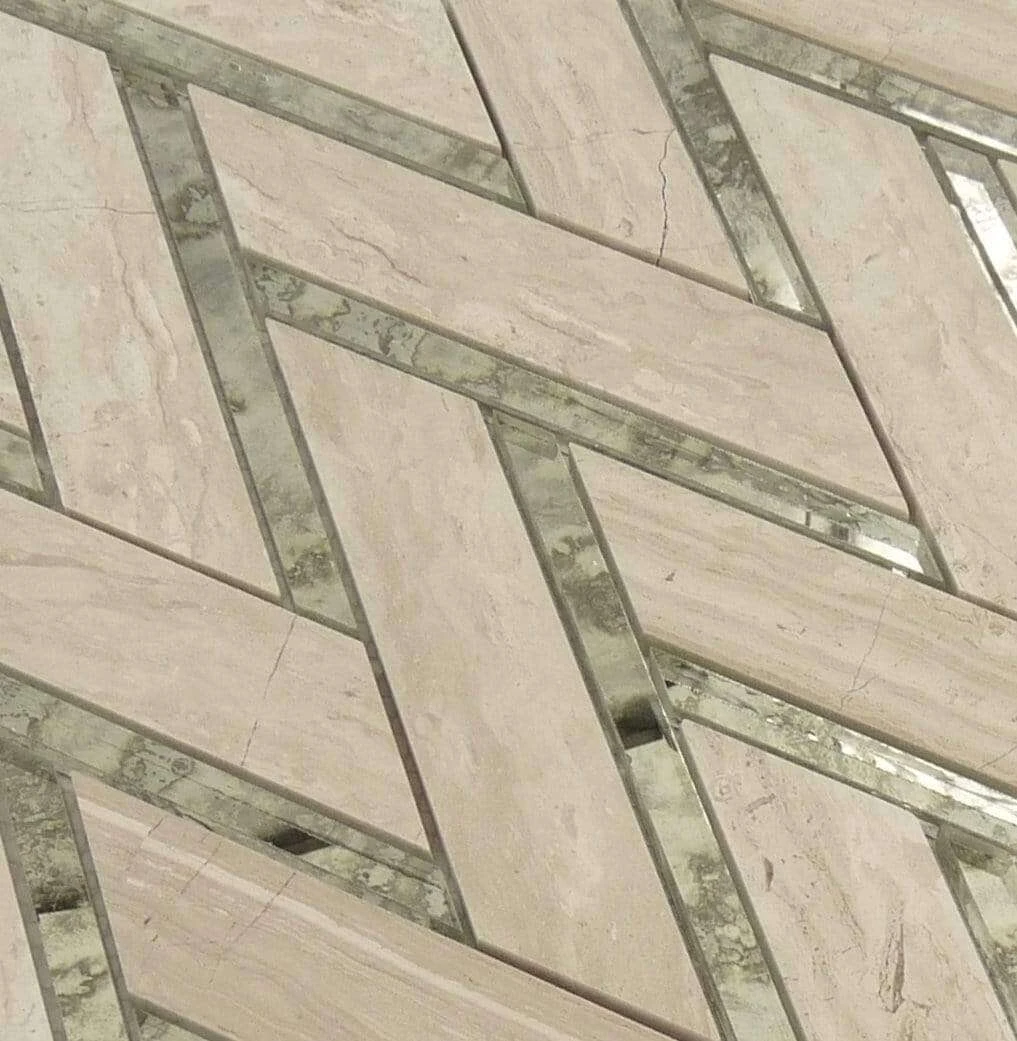 Cascade Lagos Azul, Cream Marfil And Thassos White CS-92 Brown Random Bricks Stone Polished Tile