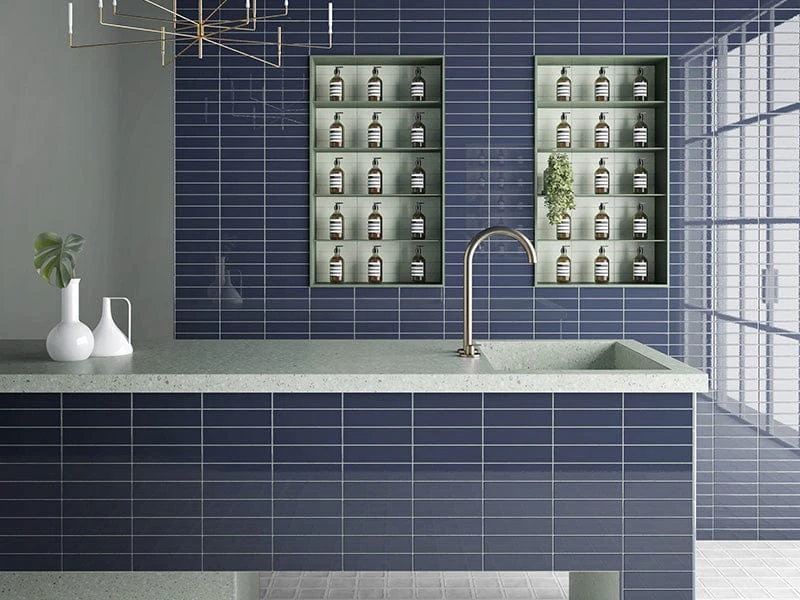 Introducing the Ridge Navy Glossy 2×8 Ceramic Tile, the perfect addition to any home. This premium tile offers a sleek and glossy finish, providing a modern touch to any room. With its unique ridge design, it adds texture and style to your space. Transform your home today!