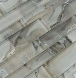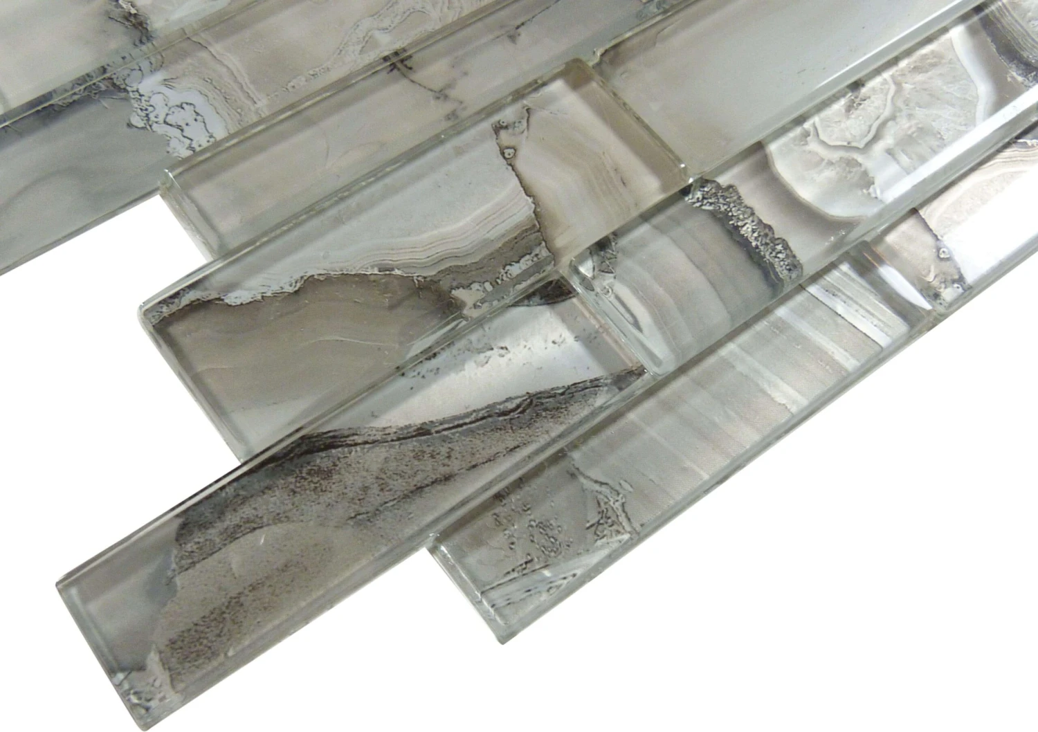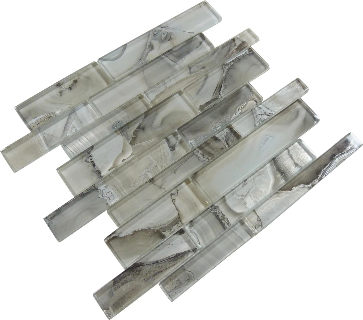 This random bricks grey glass tile replicates the old fashioned brick wall structure, creating an intriguing contrast between the classic ”stone” pattern and a glass material. It reflects one of the top trends on the market and encourages to develop and use extraordinary design ideas. When copying a brick layout exclusively by shape and structure, it creates a totally different style to modern settings. The unusual color and style in the bricks design brings identity to this glossy random brick glass tile creating unusual visual results. It is actually a fantastic choice for using in creative installations for both personal and commercial spaces.”