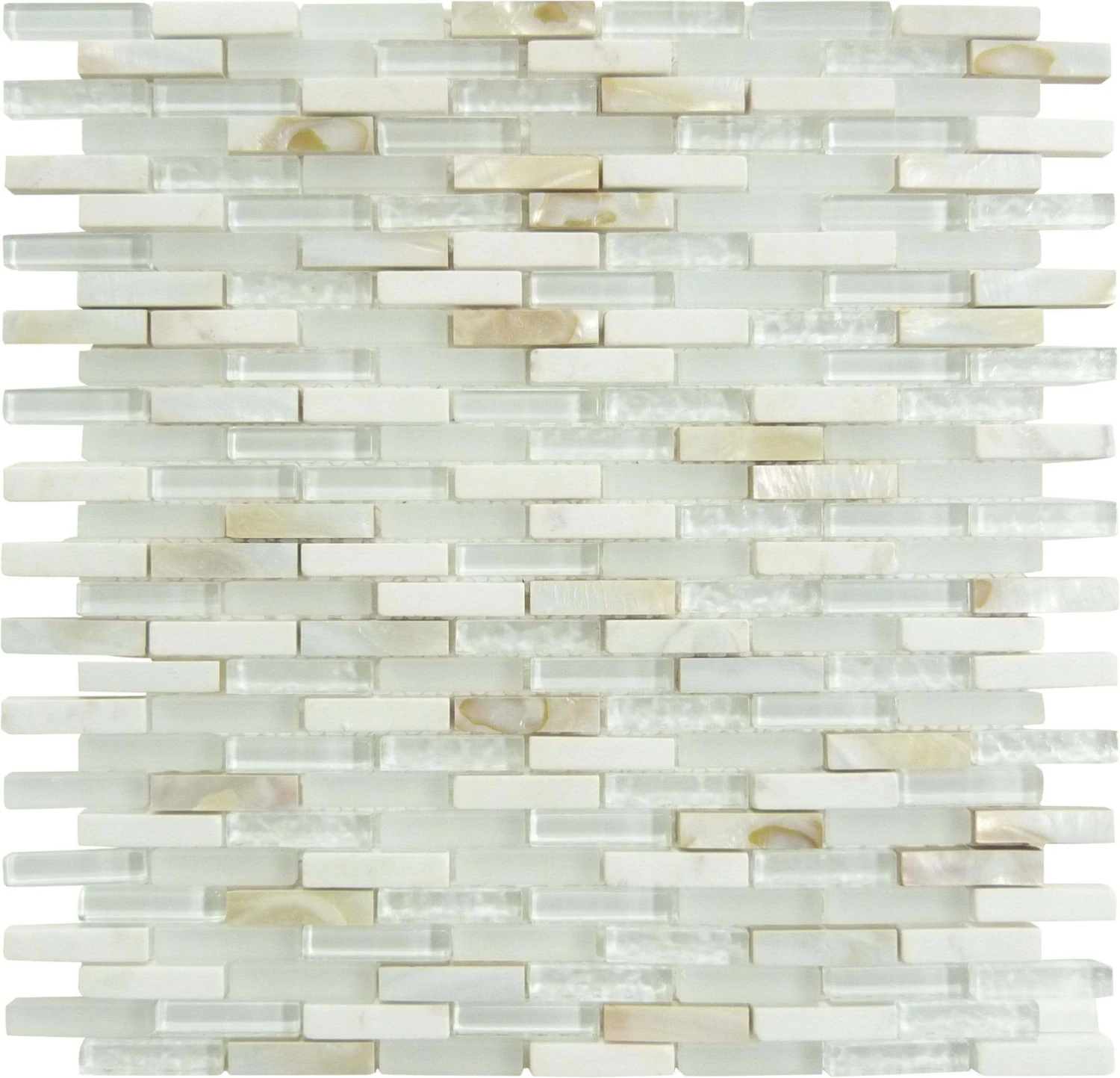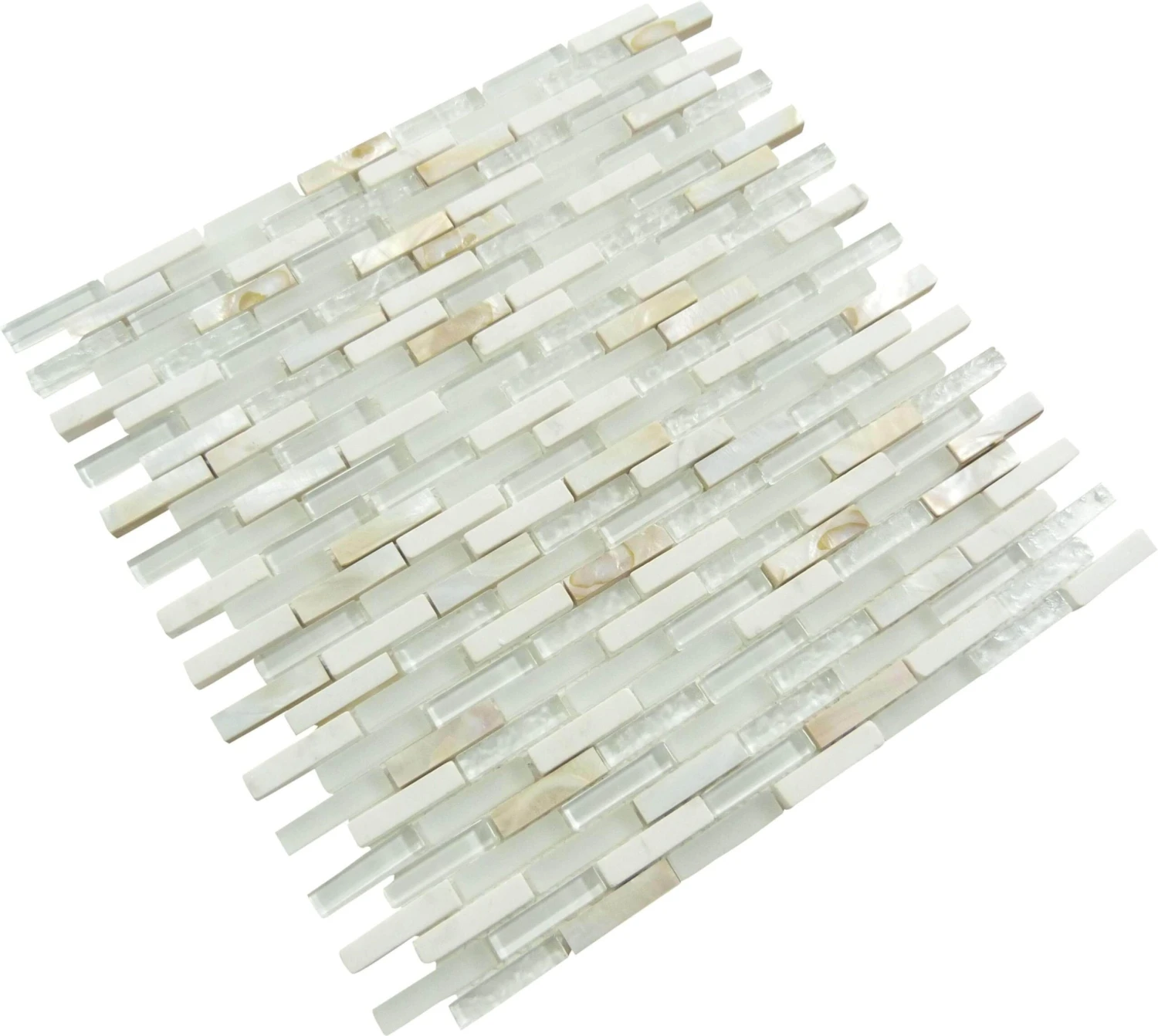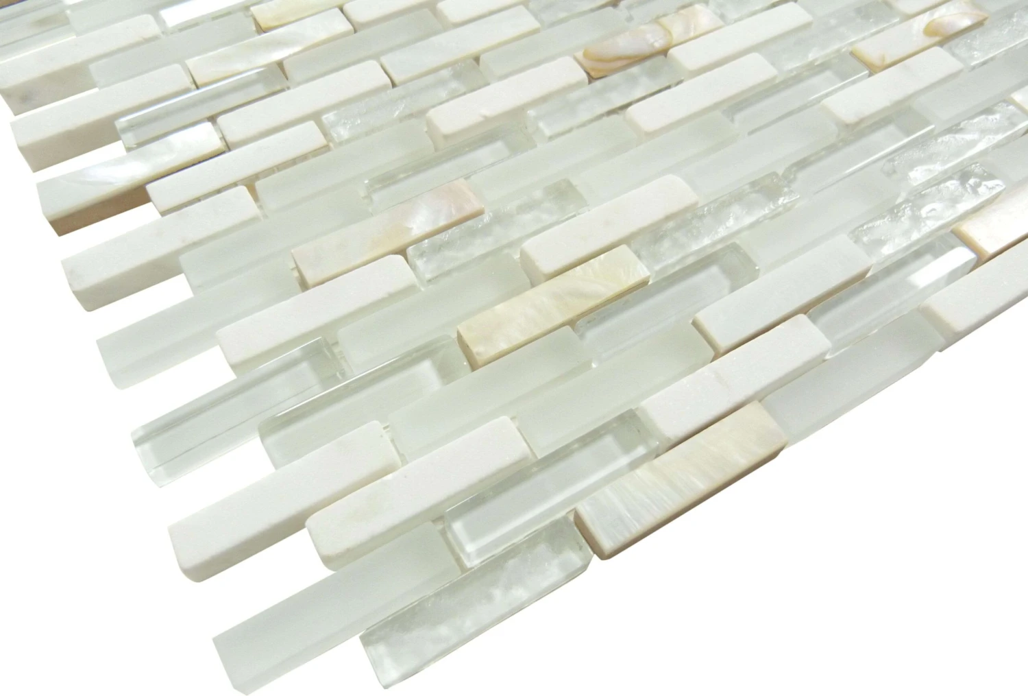 The glossy & frosted white mosaic tile constructed as small bricks brings fireside relief to modern environment, capturing the brick masonry esthetic. Even though this uniform brick uniform brick tile is made of glass, stone & shell instead of classic ceramic bricks, its appearance is tightly related to comfortable and safe atmosphere, whilst attractive design provides vivid effect and demonstrates an unhackneyed process of sprucing up. The breathtaking color palette goes with a designer approach to bring a new look at conventional mosaic layout. This wonderful mix of standard shape and modern day style inspires you to execute the most challenging mosaic projects.