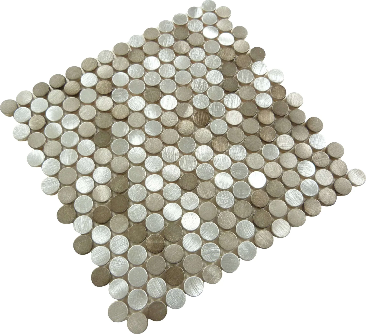 Transform your space into an urban oasis with our Urban Jungle Prism Road Brown Penny Round Brushed Metal Tile. The unique shape and brushed finish add a touch of modern sophistication, perfect for creating a stunning focal point in any room.