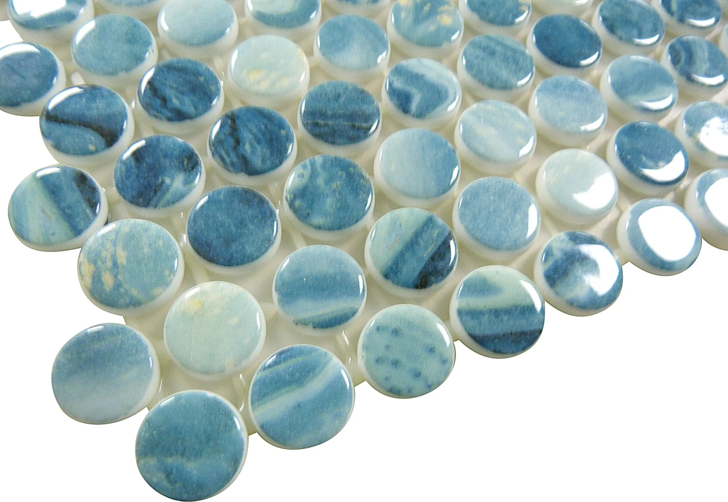 Indulge in luxury with our Vanguard Forest Aqua Penny Round Glossy Glass Tile. Crafted with a sophisticated aesthetic in mind, its vibrant color and glossy finish will elevate the look of any room. Experience the elegant beauty and exclusivity of this premium product.