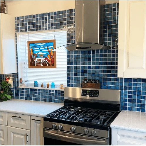 Introducing the Vanguard Forest Blue 2×2 Glossy Glass Tile. Enhance your space with this luxurious and exclusive tile, featuring a glossy finish and a unique 2×2 size. Transform your home into a work of art with this sophisticated and elegant addition. Elevate your decor with Vanguard Forest Blue.